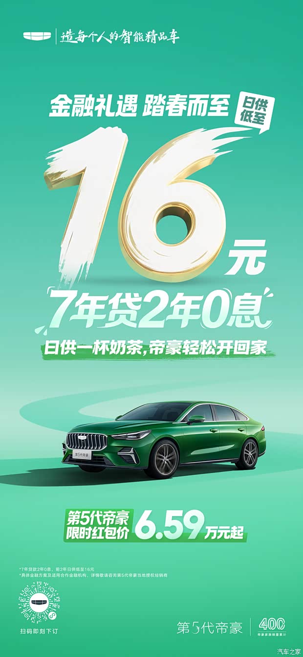 第5代帝豪 7年贷2年0息日供低至16元